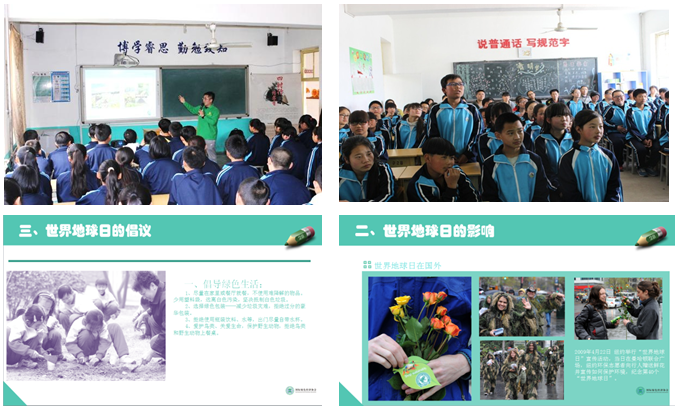 宣讲交流活动分为两部分,首先由IGEA志愿者以通俗易懂的语言和鲜活的图片,向当地师生宣讲介绍有关地球日的常识,和历年来各个国家在“4.22地球日”来临之际举办的各式各样的欢庆活动。此间,涞水县镇厂中学的同学们充分显露出他们朝气蓬勃、活波可爱的一面,积极踊跃地举手发言,提出各种饶有兴趣的问题,争相与IGEA宣讲志愿者互动交流,分享自己的对保护地球的看法与见解。